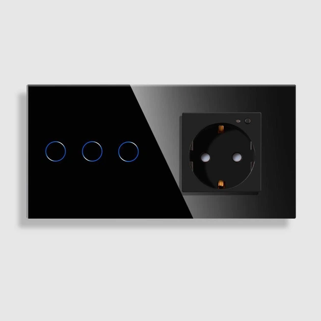 Вимикач та розетка Wifi комплект сенсорний Tuya smart (Чорний, 3 клавіші)