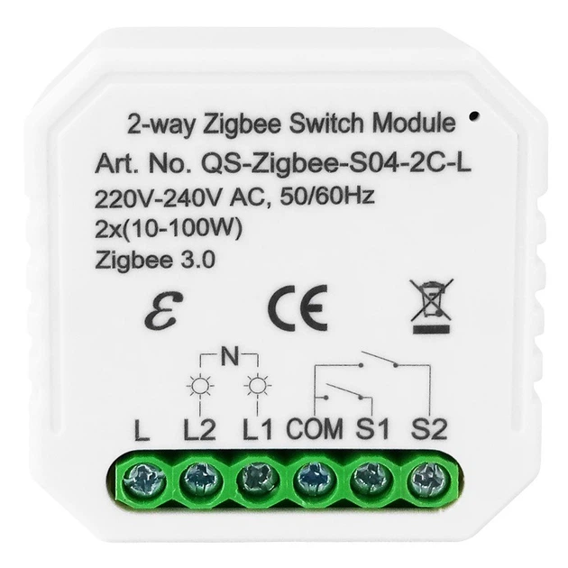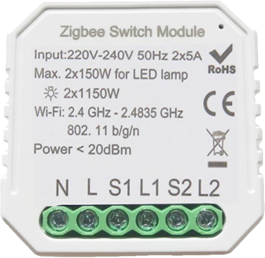 Розумний вимикач без нуля Tervix Pro Line ZigBee Switch (2 клавіші), реле для прихованого монтажу, арт. 433141