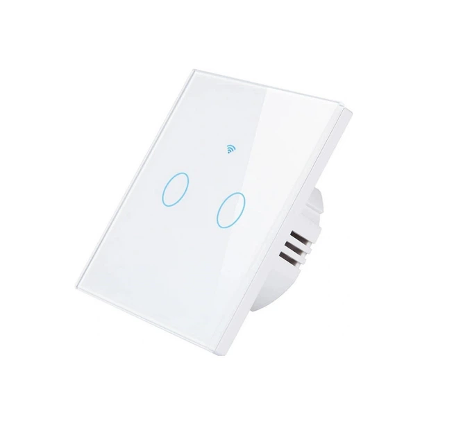 Вимикач розумний настінний, 2 канали, WiFi+RF433 для автоматизації Tuya Smart Life, сенсорний, білий