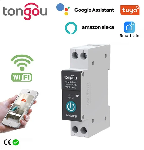 Розумний перемикач Wi-Fi, реле 40А Tuya, SmartLife з моніторингом електроенергії