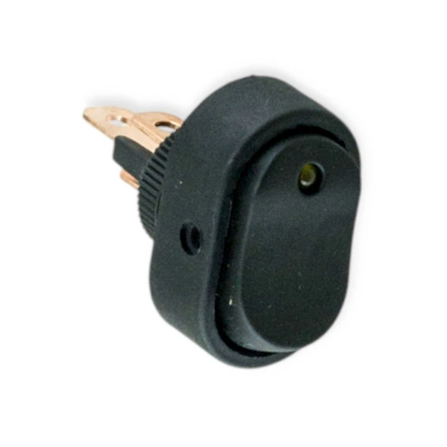Тумблер-кнопка овальна 2 положення (3 контакти) (гайка) з вічком LED жовта