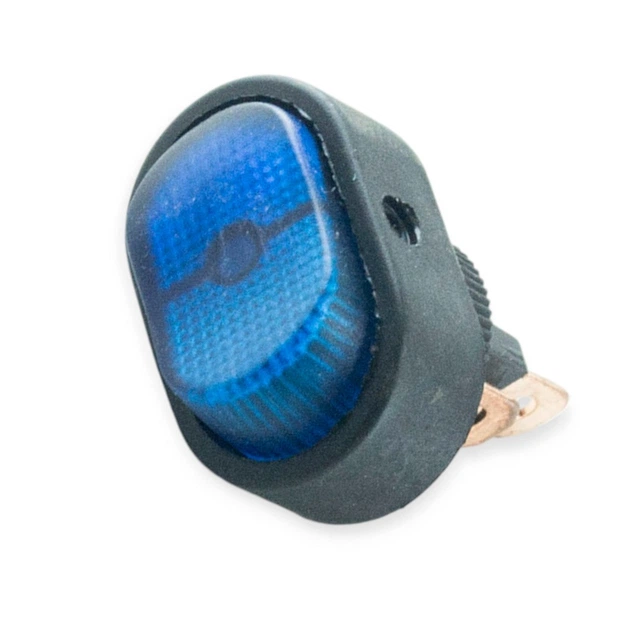 Тумблер-кнопка овальна 2 положення (3 контакти) (гайка) з вічком LED синя