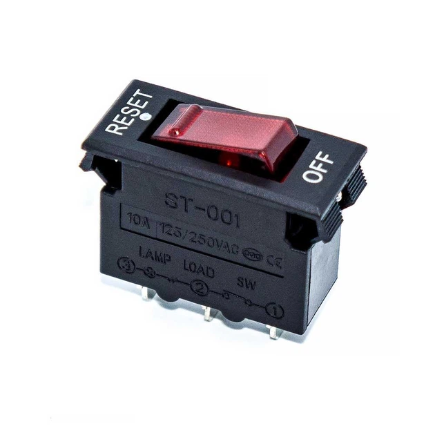 Автоматичний вимикач ST-001, 10А, 3pin, червоний, підсвічування 220V, ON-OFF