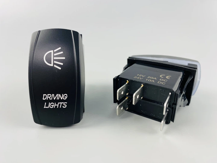 Клавіша вимикач ON-OFF, 5 ніжок, синя підсвітка, малюнок — фара додаткова