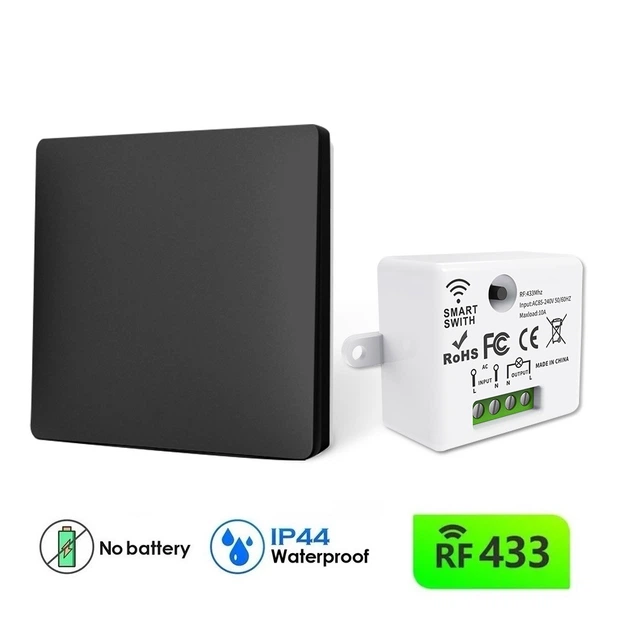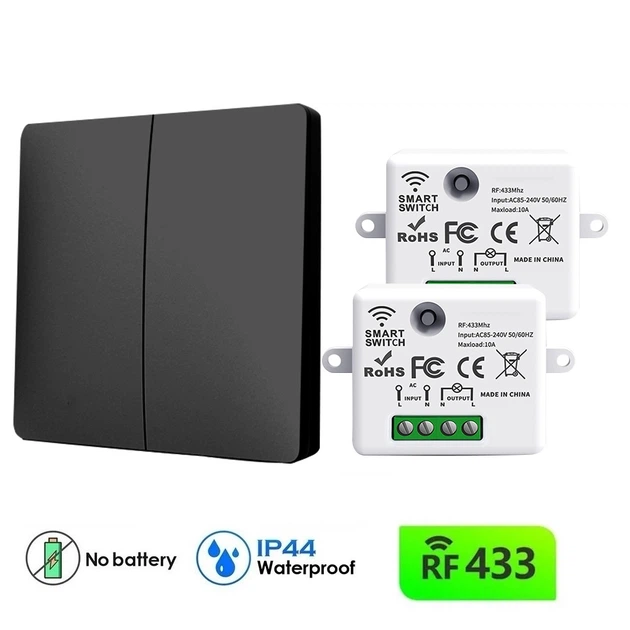 Бездротовий вимикач кінетичний, радіовимикач двохклавішний і 2 реле Inted RB4 чорний
