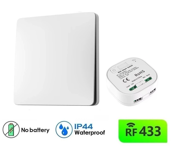 Бездротовий вимикач електроприладів/освітлення 10А RF433 + реле + батарейка 1 кнопка