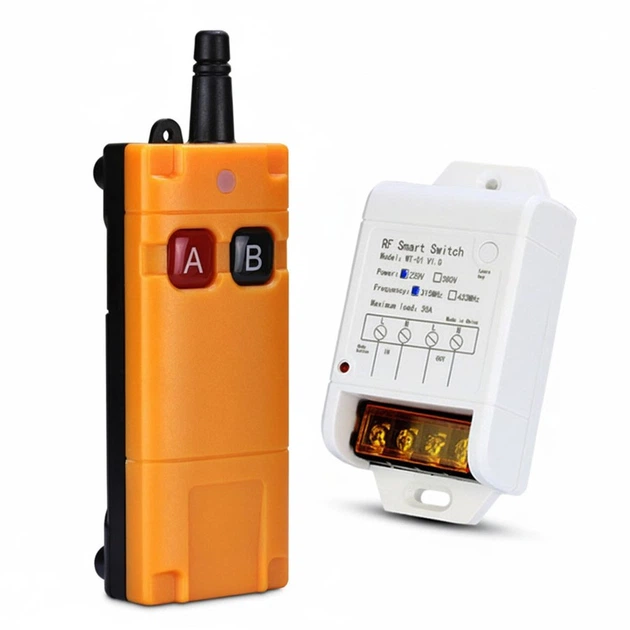 Радіокерований вимикач 220В 30А з пультом для керування промисловим обладнанням, лебідкою, мотором, режим затримки (Century