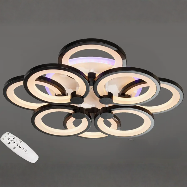 Стельова світлодіодна люстра 150W з пультом Diasha з розсіювачами-кільцями 3200K-6000K чорна IP20