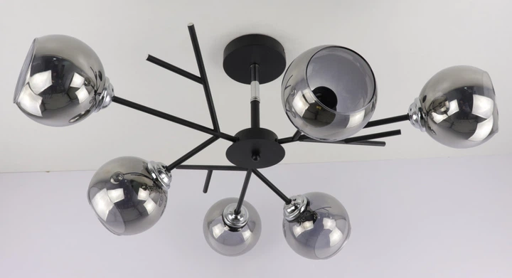 Люстра стельова на 6 лампочок 088/6-bk-gr Чорний 34х70х70 см.