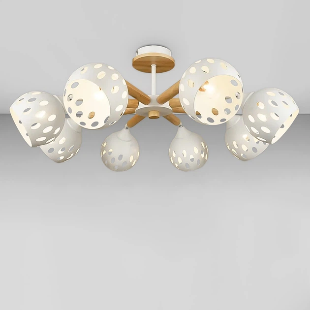 Стельова люстра Light House SR-18520/8 WT D730*H290 біла з дерев'яними вставками