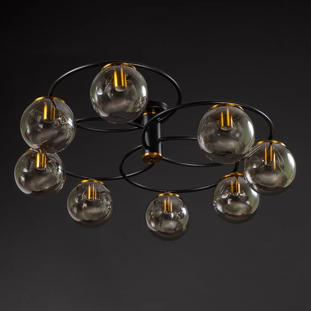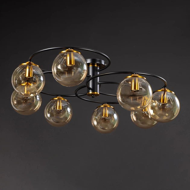 Люстра стельова на вісім скляних плафонів SVET DX-2021-8 BK+DGD