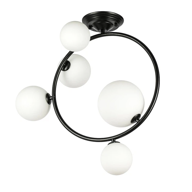 Люстра стельова молекула Levistella 918LP267-5 BK+WH чорна, плафони білі