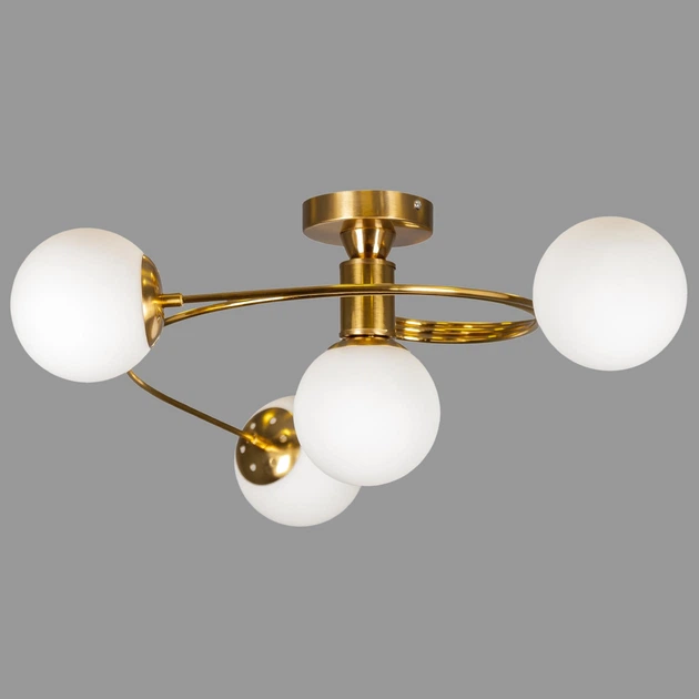Бронзова стельова люстра з кулями (61-LX04-4 BRZ+WH)