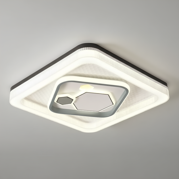 Стельова люстра світлодіодна VALESO 2H-006 квадратна 106 Вт акрил 3500-4000 Лм регульована температура 2700–6500K біло-чорна