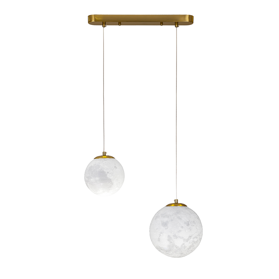 Підвісний світильник 7821520F-2 BRONZE (380) Кількість плафонів - 2 Плафон - 3D (пластик) Плафони - 150мм/200мм Колір плафонів - білий Стельова основа - 380мм Джерело світла - 2 лампи E27