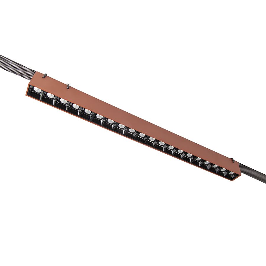 Світильник лінійний 78020-BL02 ORG для текстильної трекової системи Джерело світла: LED Потужність: 20W Робоча напруга: DC 48V Температура світла: 4000К CRI: 80 Розміри: (дшв) 530х33х43мм Матеріал світильника: алюміній Колір світильника: теракотовий Матеріал кріплення - пластик Тип кріплення - текстильна трекова система