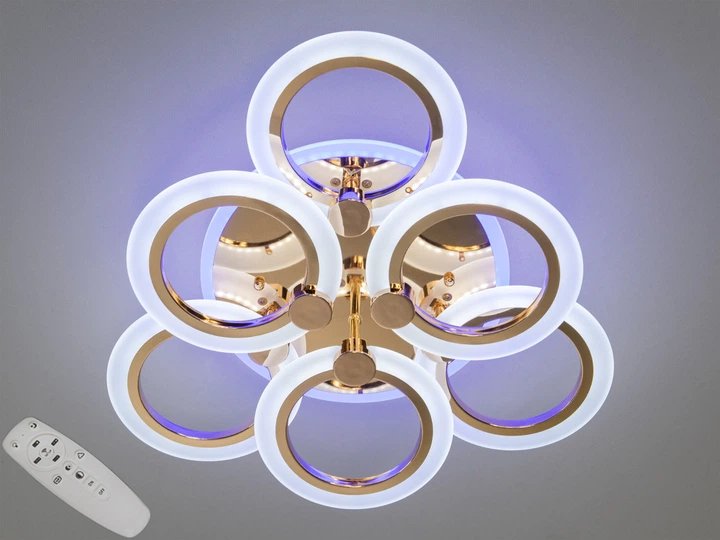 Стельова світлодіодна люстра 72W з пультом Diasha з підсвічуванням корпусу 3200-6500К золота IP20