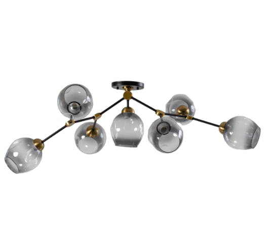 Люстра стельова Sirius DW008-5 BK із п'ятьма скляними круглими плафонами під лампи E27 на чорному металевому корпусі