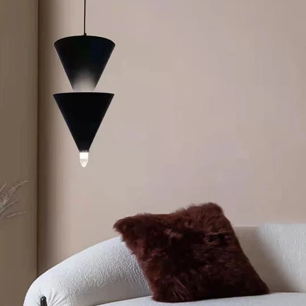 Чорний підвісний світильник із подвійним конусним дизайном 17х40 см | Line F | Арт. MJ347/2 BK