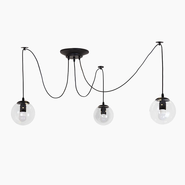 Світильник підвісний павук Light House LS-19447-3 BK+CL чорний, прозорий плафон