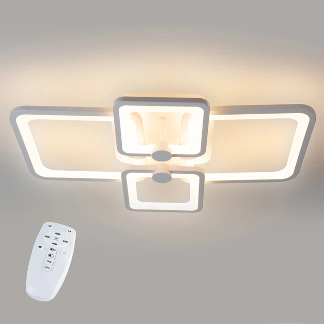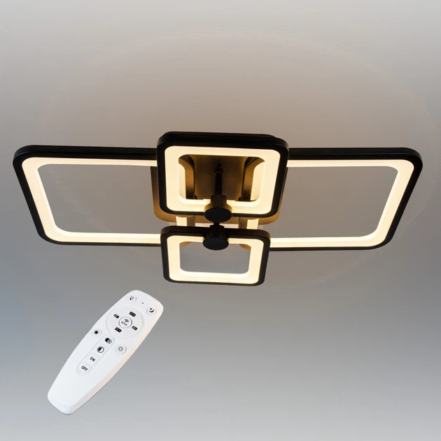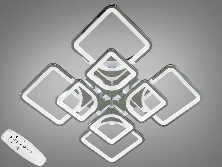 Стельова світлодіодна люстра 105W з пультом Diasha з квадратними розсіювачами 3200K/4100K/6500K хром IP20