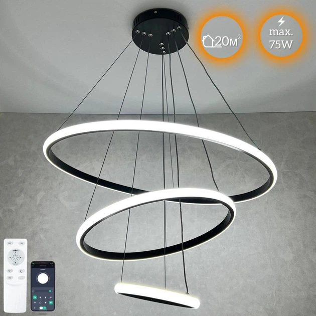 Люстра світлодіодна підвісна LED світильник для квартири на стелю лед 26500 Чорний 65-180х6х20 см.