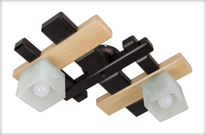 Дерев'яна стельова люстра на 2 плафони Е-27 світильник в спальню кухню кабінет коридор передпокій кімнату Ксена/2 венге нату