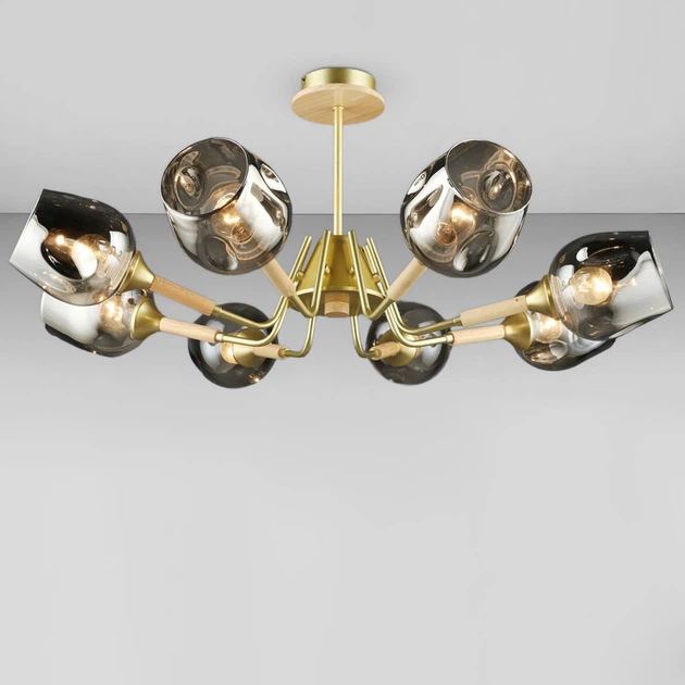 Люстра-молекула стельова Light House SRS-20123/8 колір золото + дерево, чорний плафон