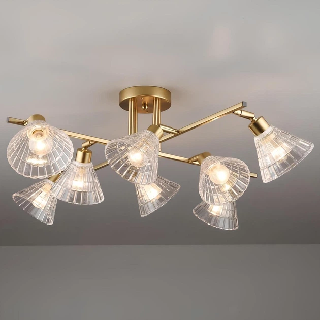 Стельова люстра Valeso B N6653/8 на 8 поворотних плафонів з прозорого рифленого скла під лампи Е27 каркас мідного кольору