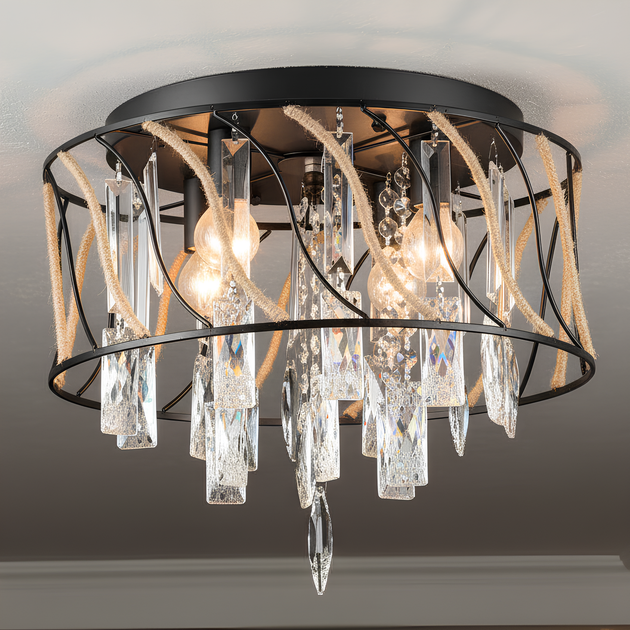 Кришталева люстра стельова Valeso E2730/4 на 6 ламп Е14 металевий корпус чорного кольору