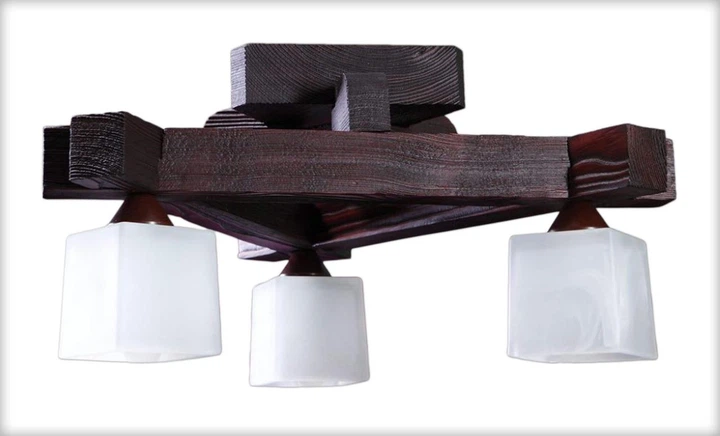 Дерев'яна стельова люстра на 3 плафони Е-27 світильник в спальню кабінет передпокій кухню Квадро/3 венге текстура