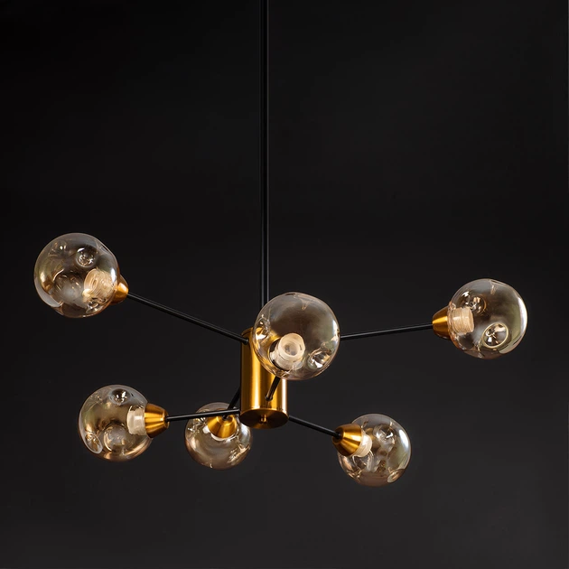 Люстра стельова 6 лампова в зал у велику кімнату DX-2011-6 BK+DGD