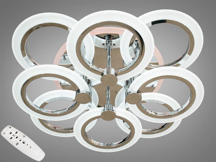 Стельова світлодіодна люстра 110W з пультом Diasha з плафонами-кільцями 3200-6500К хром IP20