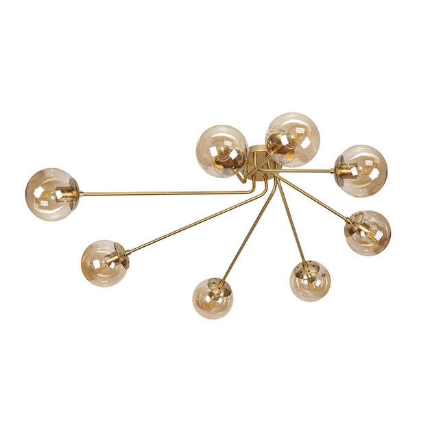 Люльова стельова люстра на вісім сферичних плафонів під лампу Е27 бронза IP20 7529803-8 BRZ+BR