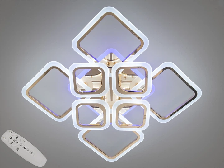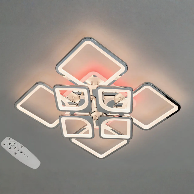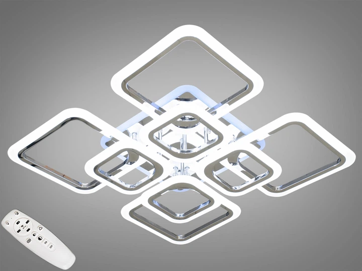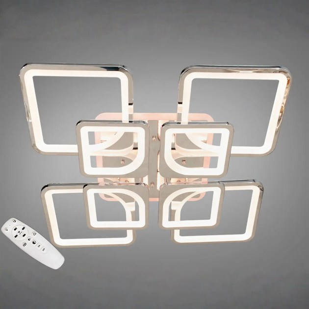 Стельова світлодіодна люстра 155W з пультом Diasha з квадратними розсіювачами 3200K-6500K хром IP20