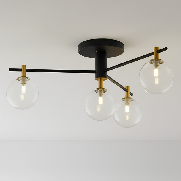 Стельова люстра Sirius 9719-4 BK+Copper з чотирма сферичними прозорими плафонами під лампи G9 чорний корпус з міддю