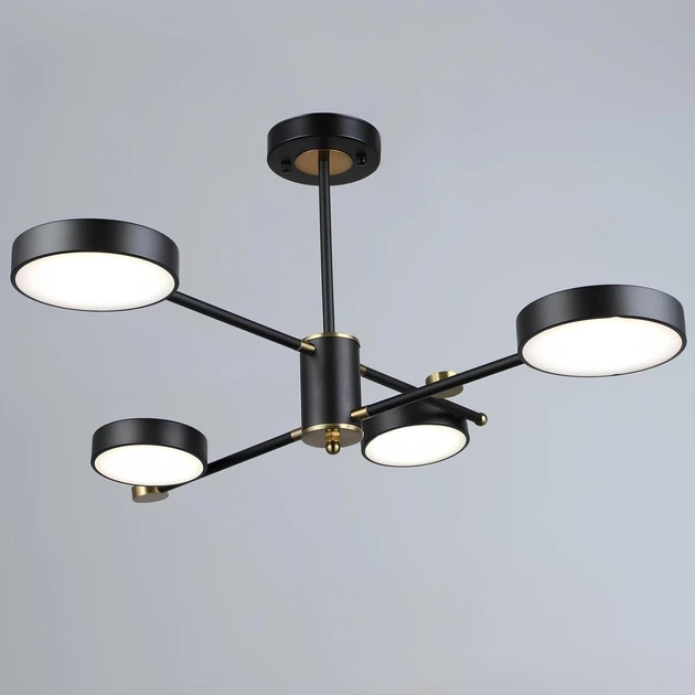 Стельова LED-люстра 84W Sirius B YH1124/4 BK+COP із чотирма плафонами 3000–6500K у чорно-мідному виконанні