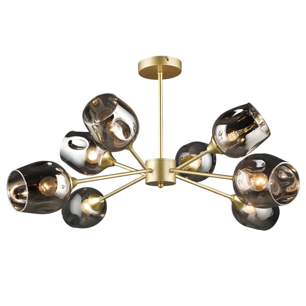 Люстра стельова Valeso N6621/8 з вісьмома затемненими плафонами під лампи E27 корпус золотистого кольору