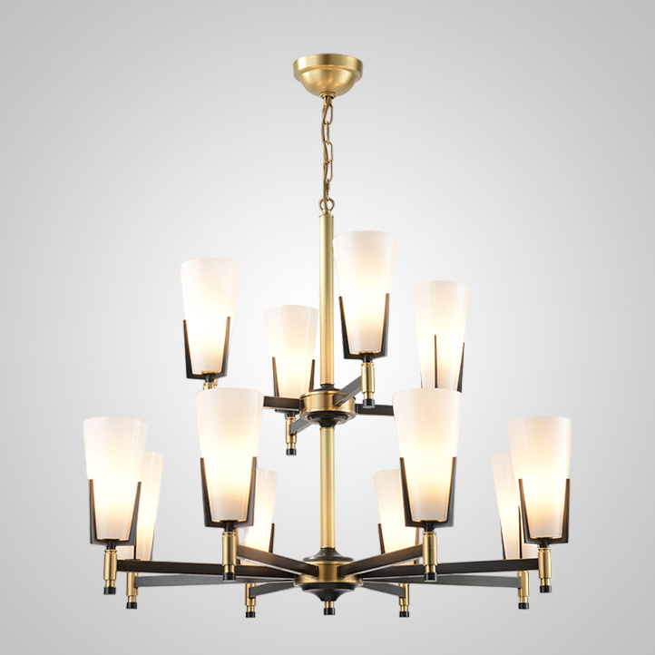 Підвісна люстра FABRICIO L12 від бренду DEPRIMO – це елегантний та вишуканий освітлювальний пристрій, який ідеально підійде для створення розкішної атмосфери у вашому інтер'єрі. Ця класична люстра стане вишуканою прикрасою для вітальні, готелю, шоу-руму, студії, холу або лаунжу зони. Поєднання скляних плафонів білого кольору та арматури з латуні надає люстру особливого шарму та