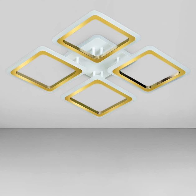Люстра стельова LED Light House SC-18692/4B WH+FG/RGB 104W+10W 2.4G 496*496*80, колір білий + золото