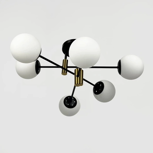 Чорна стельова люстра на 5 плафонів молекула (52-F0231-5 BK+BR)