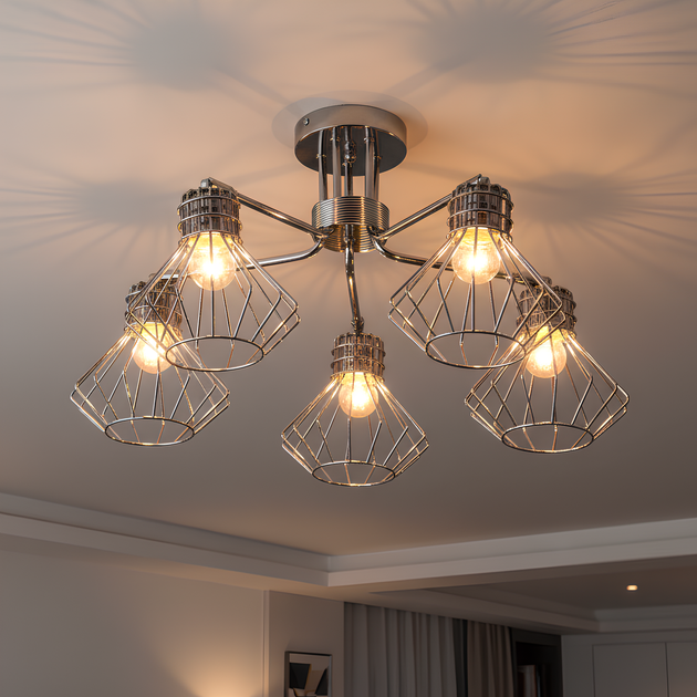 Стельова металева люстра лофт Sirius C 1070-5 з п'ятьма плафонами під лампи Е27 у хромовому кольорі