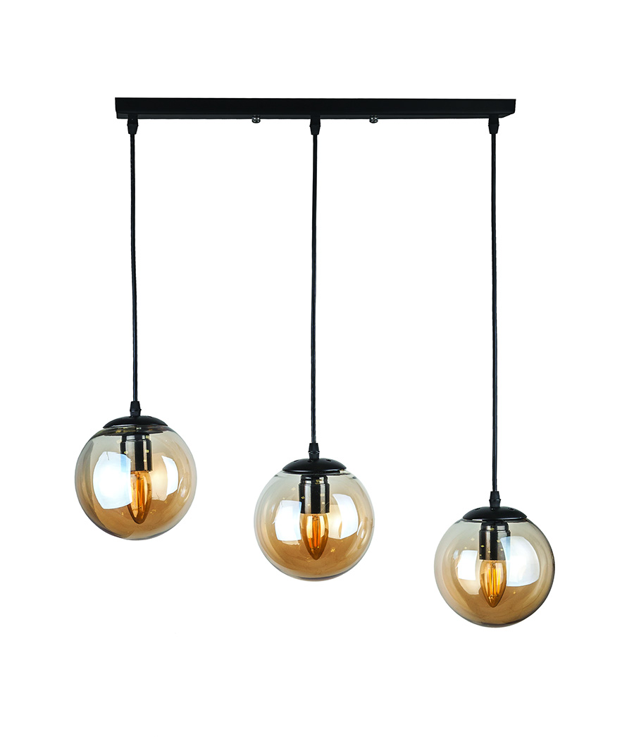 Підвіс в стилі модерн 756PR150F-3 BK+BR (500) Матеріал люстри: метал+скло Колір люстри: чорний+коричневий Кількість плафонів - 3 Розмір плафона - 150 мм Тип кріплення - стельовий планка Кріплення до стелі колір - чорний Матеріал кріплення - метал Джерело світла - 3 лампи Е27 Максимальна потужність лампочки 60 Ватт Можливість використання лампи: LED, розжарювання, енергозберігаюча Комплектація лампочками: Немає Тип люстри - підвісна