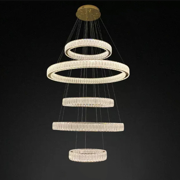 Підвісна люстра BELLA D40+80+60+100+60 від бренду DEPRIMO втілює сучасний дизайн з елементами арт-деко, як продукт з Китаю. Ширина люстри доступна в декількох варіантах – 400, 800, 600 та 1000 мм, а її висота становить 2500 мм. Люстра оснащена світлодіодними лампами, які вже входять у комплект, та підходить для живлення від напруги 220-240 В. Плафони люстри виконані у прозорому кольорі, а арматура