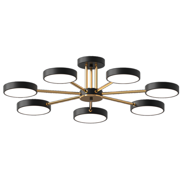 Світлодіодна стельова люстра 126W Sirius B X13242/7 BK+FGD із сімома акриловими круглими плафонами 3000–6500K чорно-золота
