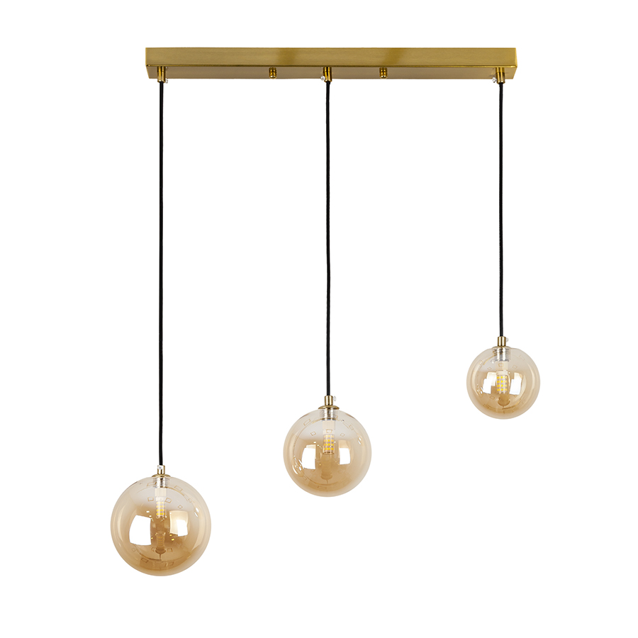 Підвіс в стилі модерн 761P151F-3 BRZ+BR (500) Матеріал люстри: метал+скло Колір люстри: бронза+коричневий Кількість плафонів - 3 Розмір плафонів - 100мм, 120мм, 150мм Тип кріплення - стельова планка 500 мм Кріплення до стелі колір - бронза Матеріал кріплення - метал Джерело світла - 3 лампи G9 Комплектація лампочками: ні Тип люстри - підвісна