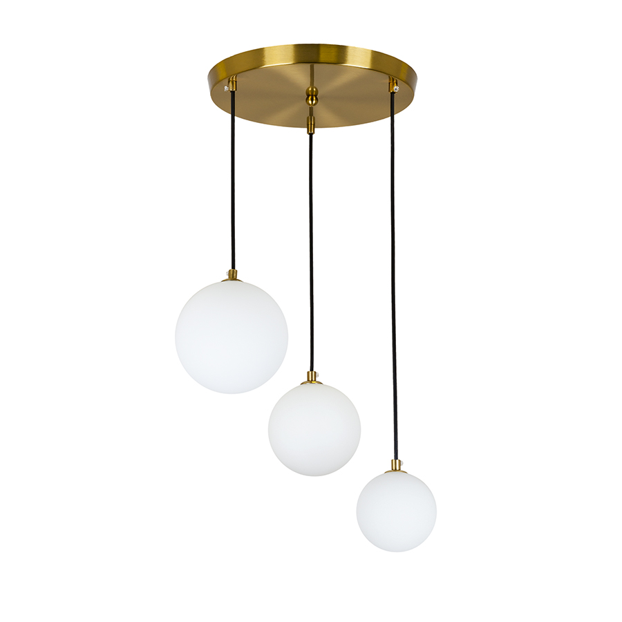 Підвіс в стилі модерн 761P151F-3 BRZ+WH (300) Матеріал люстри: метал+скло Колір люстри: бронза+білий Кількість плафонів - 3 Розмір плафонів - 100мм, 120мм, 150мм Тип кріплення - стельове коло 300 мм Кріплення до стелі колір - бронза Матеріал кріплення - метал Джерело світла - 3 лампи G9 Комплектація лампочками: ні Тип люстри - підвісна