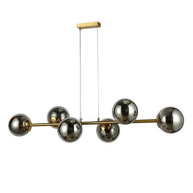 Підвісна люстра Levistella на шість димчастих плафонів під лампу Е27 золотий каркас IP20 7841021-6 DDG+BK