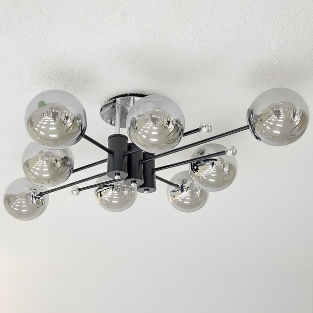 Стельова люстра-молекула VALESO 91191/8 з вісьма кулястими хромованими плафонами під лампи Е27 корпус чорний/хром