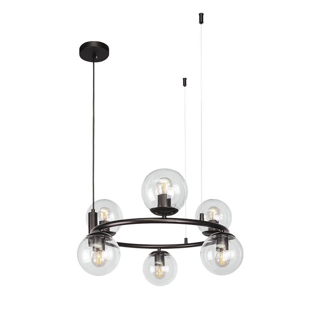 Люстра чорна підвісна на шість прозорих плафонів Levistella 7521011-6 BK+CL